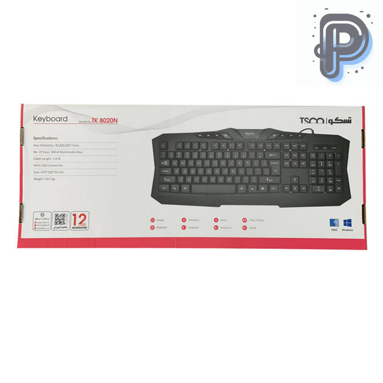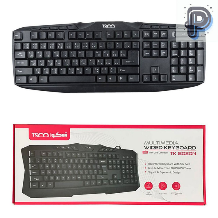 کیبورد تسکو TK 8020N یک کیبورد سیمی با طراحی ارگونومیک و کلیدهای نرم است که برای تایپ طولانی و استفاده روزمره ساخته شده. کلیدها دارای چاپ سیلکی و عمر بیش از ۳۰ میلیون بار فشرده شدن هستند. نصب آن بدون نیاز به درایور انجام میشود و از طریق USB به سیستم متصل میشود.