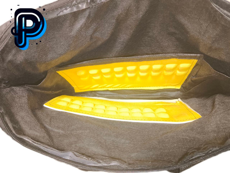داخلش لایه فومی ضربهگیر داره (اون زردی که میبینی)، اما نه در حد مدلهای حرفهای. برای حمل روزمره کاملاً کفایت میکنه.