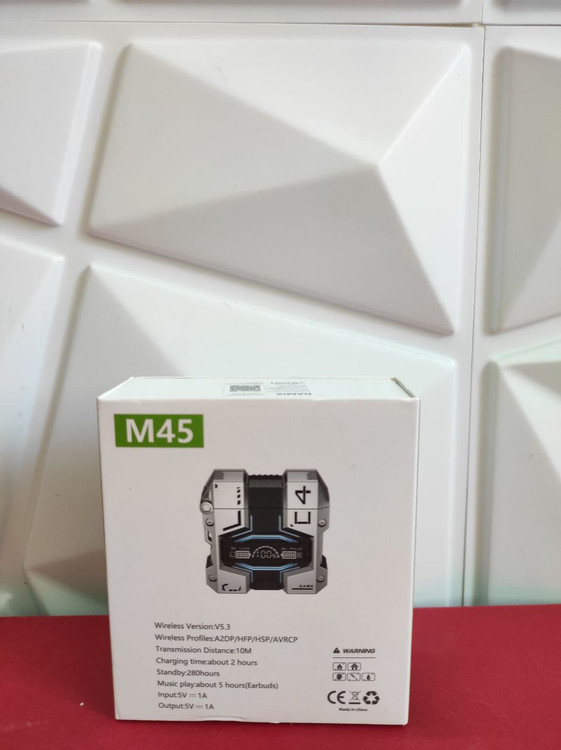 هندزفری بلوتوثی گیمینگ مدل M45. یک ایرپاد مخصوص بازی و استفاده روزانه است که با طراحی اسپرت و افکت های لامپ های 7 رنگ RGB ظاهر جذابی به این محصول داده است. این مدل برای اتصال به دستگاه به بلوتوث نسخه 5.3 مجهز شده است و در مدت زمان کوتاه ، اتصال با گوشی موبایل اندروید یا ios شما برقرار خواهد شد.از ویژگیهای اصلی این محصول محفظه نگهدارنده یا همان کیس آن است. این کیس قابلیت شارژ هدفون را دارد. برای شارژ آن کافی است از درگاه USB-C تعبیه شده بر روی کیس و کابل شارژ درون بسته بندی استفاده کنید. همچنین این ایرپاد گیمینگ دارای یک میکروفون با کیفیت است و این ویژگی ، آن را برای مکالمه مناسب میسازد . از قابلیت های این محصول میتوان به ضد آب بودن ، فعال بودن Siry در آیفون ، HD Voice و ENC اشاره کرد. زیر این محصول یک پورت خروجی USB نیز قرار دارد که به وسیله آن میتوانید از باتری ایرپاد به عنوان پاور بانک اضطراری نیز استفاده کنید