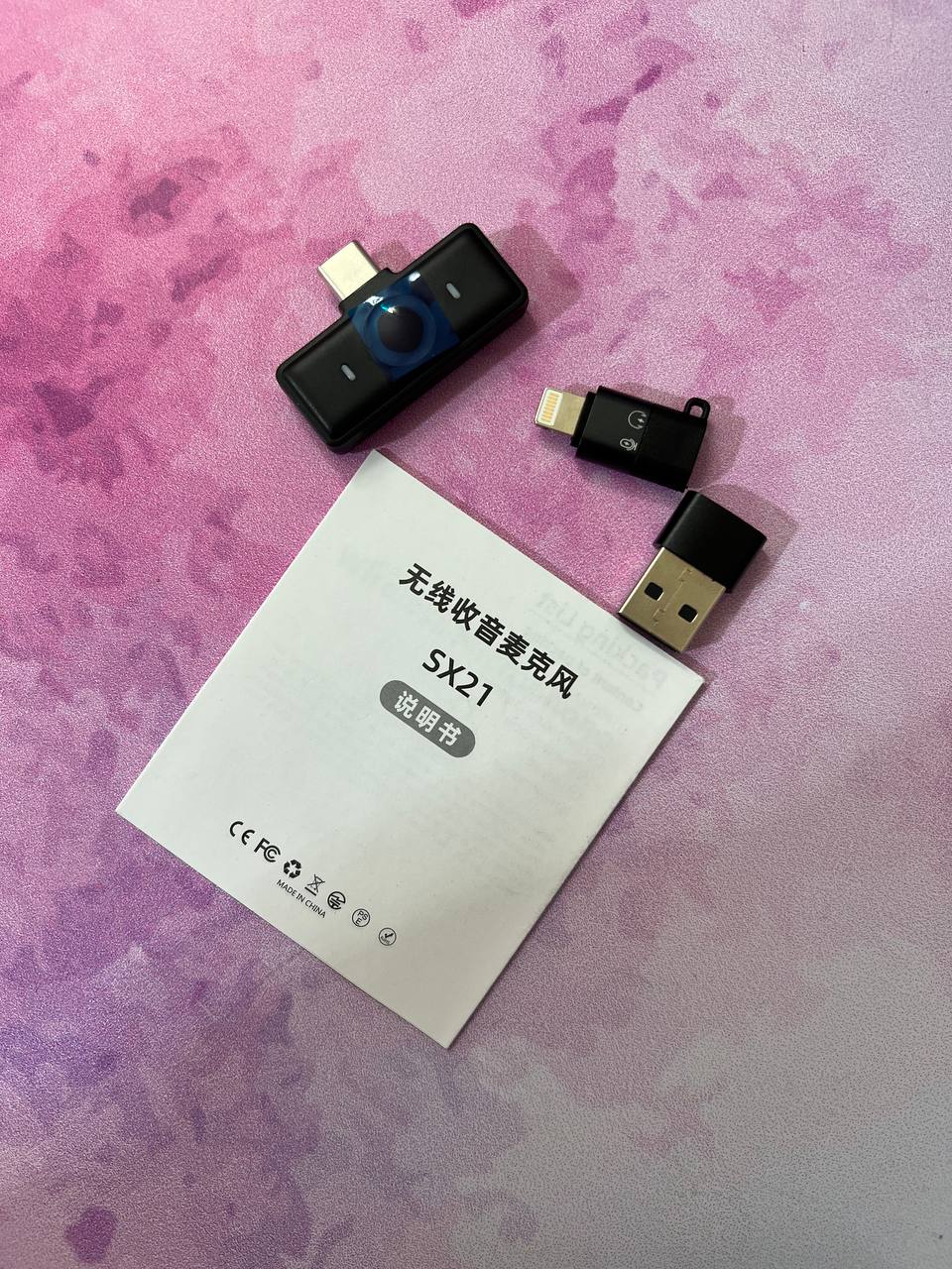 کیس شارژ - مبدل تایپ c - مبدیل USB - گیرنده میکروفن - دو عدد میکروفن بیسیم -کابل شارژ تایپ c - دفترچه راهنما
